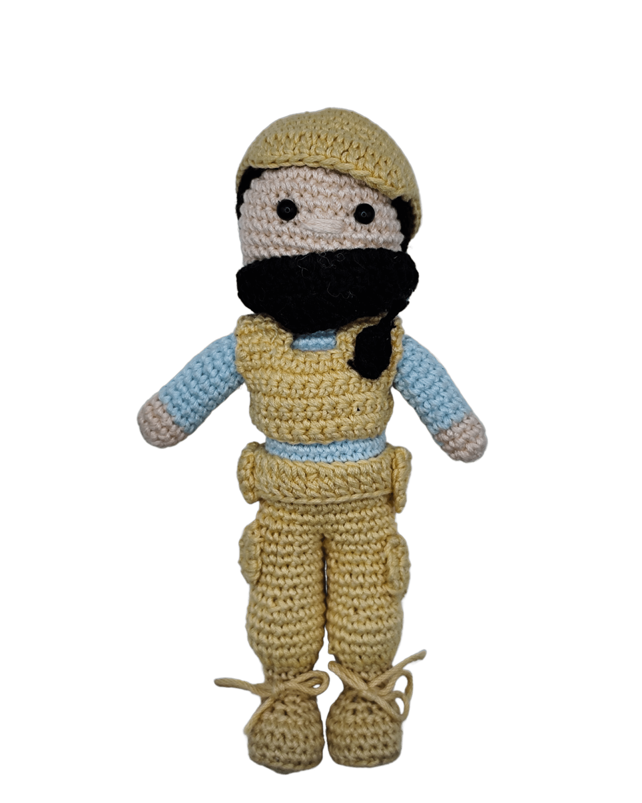 Figura de colección de la Secretaría de Seguridad Ciudadana, tejido a mano con gancho, confeccionado con hilo de algodón suave y relleno esponjoso que le da forma y firmeza.